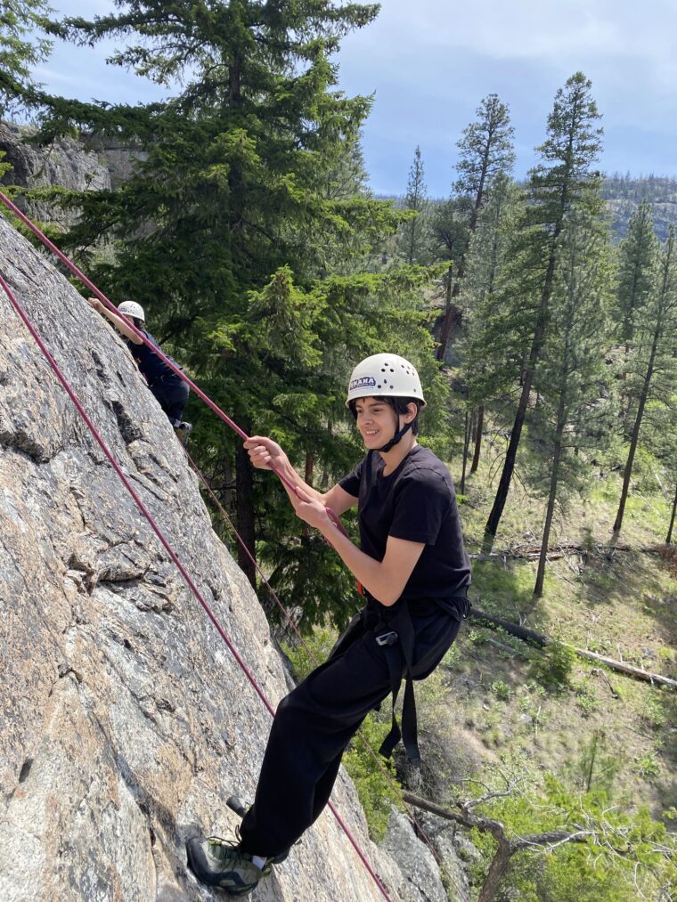 As the program progresses, basic movement lessons are provided to help each participant improve their technique and build confidence on the wall, both in rope climbing and bouldering. The indoor climbing gym is a great location to learn and practice new skills in a controlled environment. At the climbing gym, each participant can progress at their own pace and challenge themselves with a variety of different routes in the gym, before we head outdoors to the Skaha Bluffs.